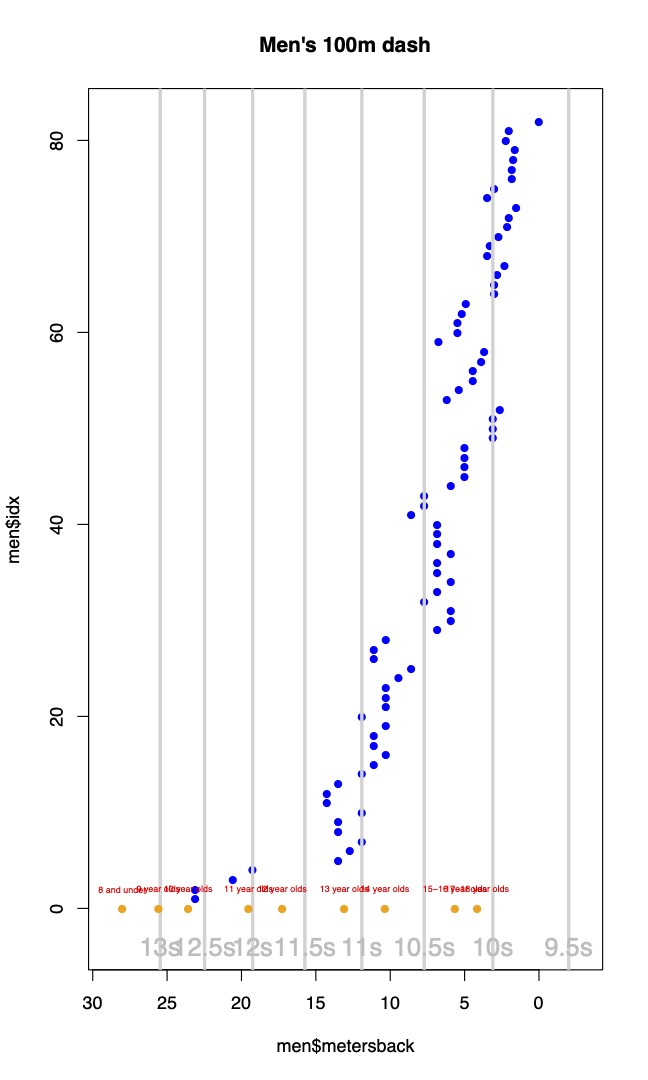 This was an experiment in 'Data Cinema.' We turned the fields of play into charts themselves. Narrative data storytelling then revealed the incredible continued human progress in some sports, like the 100-meter dash, and where progress had stalled out as in the long jump, where records stood for decades without being smashed.