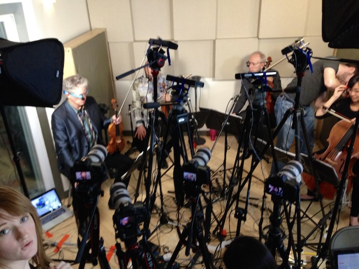 Watch FilmWe set up a motion capture stage to record the bow movements of the quartet. By mapping this data to particle systems in WebGL, we could show the precise timing and 'breathing' of the group. The result is a visualization where you can see the music's structure in the physical gestures of the performers.